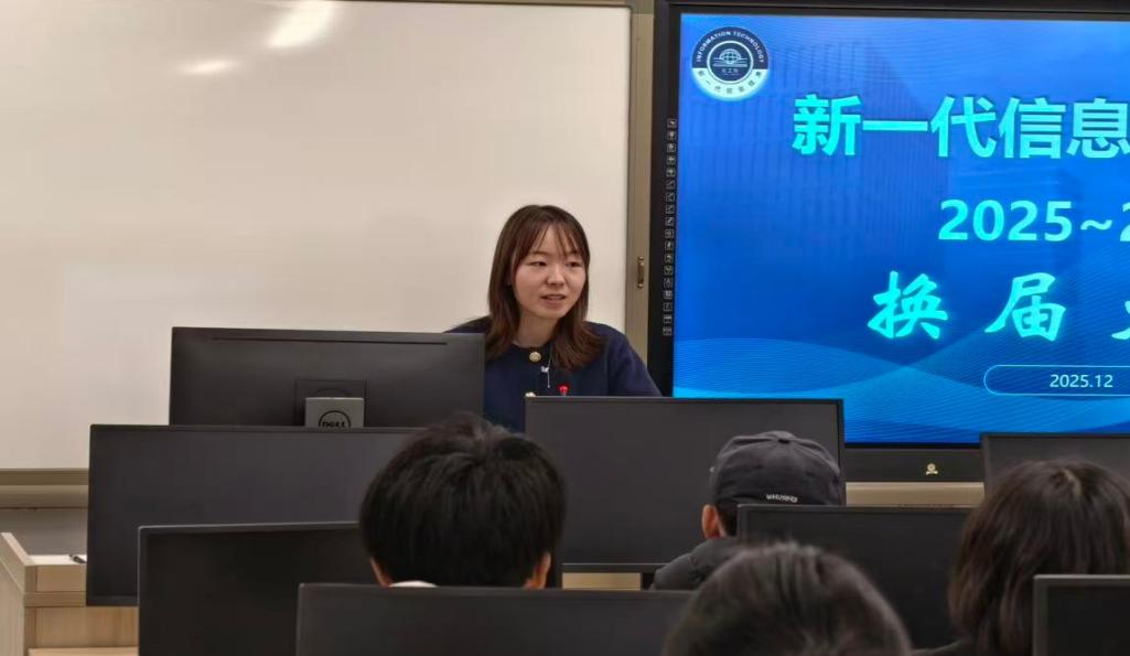信息工程学院新一代信息技术社团2025-2026学年换届大会在匠心楼210顺利举行。信息基础教研室张仙妮老师、肖彬老师莅临指导,社团全体成员参加。