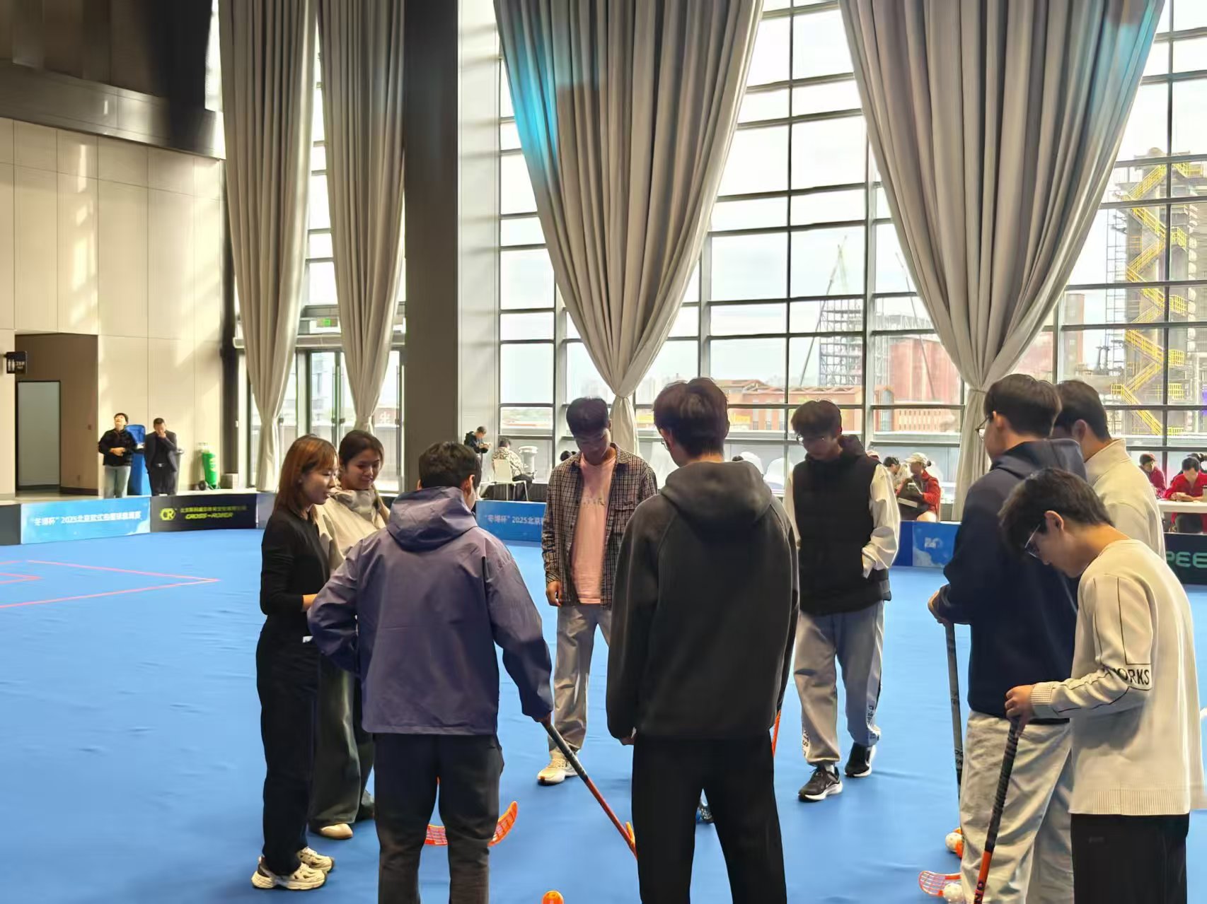 在博览会上,同学们近距离接触了众多冬季运动领域的前沿科技成果。从智能化的冰雪运动装备,到基于大数据、人工智能的运动训练分析系统;大家还兴致勃勃地分组体验了旱地冰球项目,在挥杆互动中直观感受科技对运动场景的适配与优化。现场,大家认真聆听工作人员的讲解,或亲自体验科技产品的操作,在实践中感受新一代信息技术如何为冬季运动赋能,助力冰雪产业的创新发展。