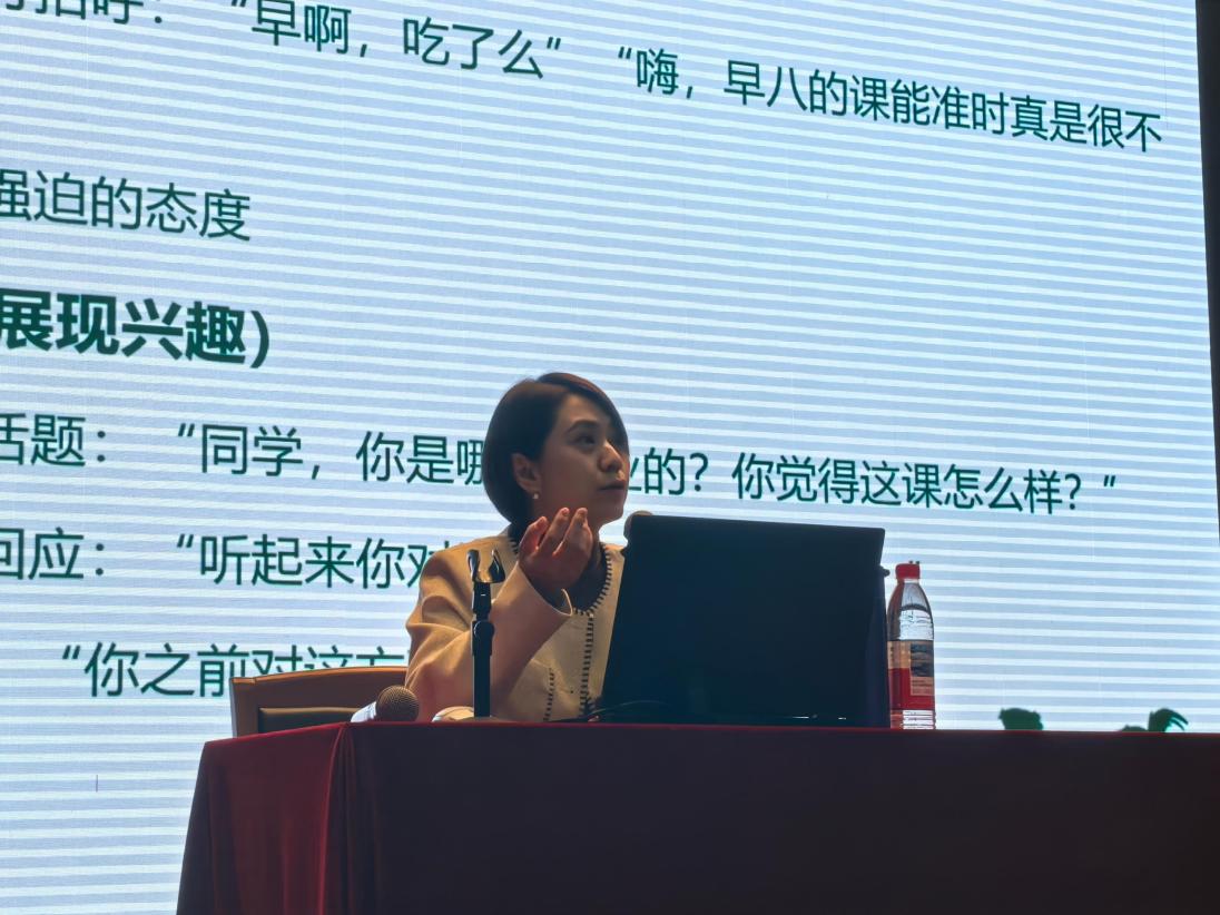 随后,刘俊娉老师给大家介绍了结交新朋友的两大技能——DBT人际技能和GIVE技能,并现场让学生演练。她谈到,人际交往要遵循尊重、真诚、宽容、理解、平等和互利合作等原则,要学会运用主动联络、卸下包袱、互相帮助等措施维护友谊。
