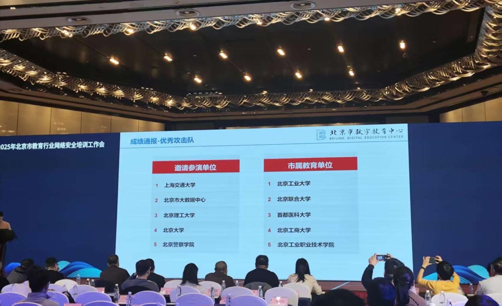 我校荣获2025年北京市教育系统网络安全攻防演习“优秀攻击单位”称号